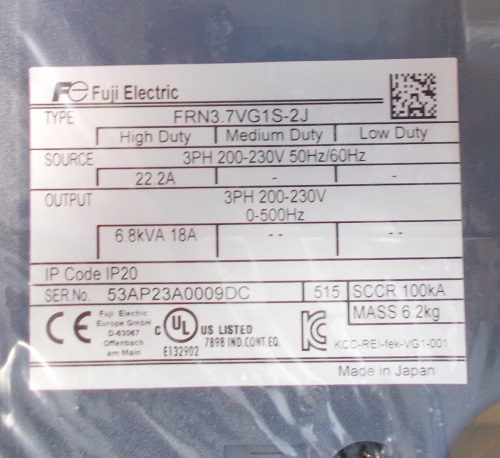 FRN3.7VG1S-2J 3.7kwインバーター・三相200V 富士電機 未使用品