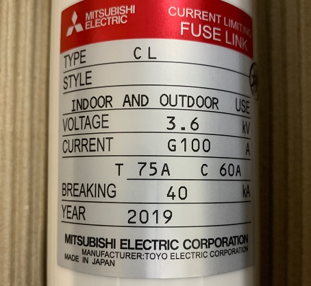 CL 3.6KV G100 T75 C60 高圧限流ヒューズ 三菱電機 未使用品