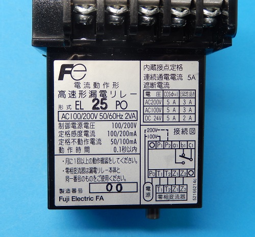 EL25P0-1/2 漏電保護リレー 富士電機 ランクS中古品