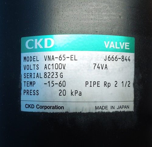 VNA-65-EL AC100V ガス遮断弁 CKD ランクA中古品