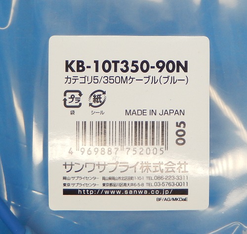 KB-10T350-90N カテゴリ5/350M単線ケーブル サンワサプライ 未使用品