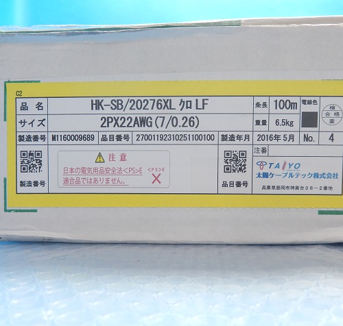 HK-SB/20276XL 22AWG-2P 100m 電子機器配線用ケーブル TAIYO 未使用品