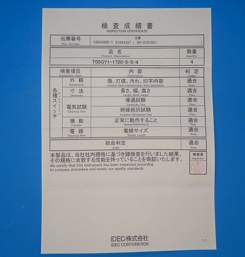 ・検査成績書はコピーを同梱します(1枚しかない為)