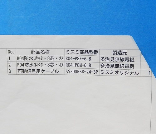 コネクタ付(多治見無線R04-P8M-6.8(オス8芯)×2)