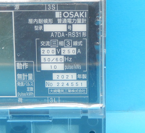A7DA-RS31 200V250A 電力量計 コンパクトEM 大崎電気工業 ランクS中古品