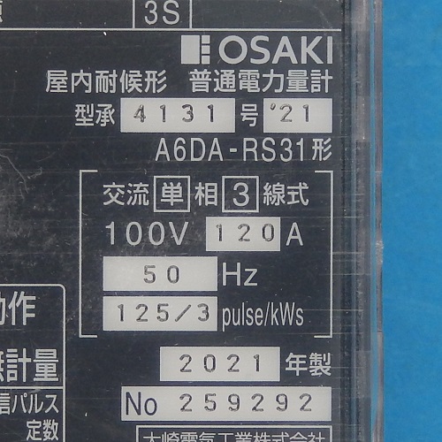 A6DA-RS31 100V120A50Hz 電力量計コンパクトEM 大崎電気工業 未使用品