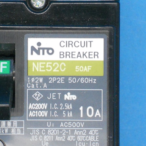 NE52C 2P10A サーキットブレーカー 日東工業 ランクA中古品
