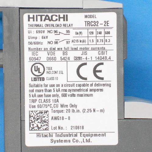 TRC32-2E 15A 標準形サーマルリレー 日立 ランクS中古品