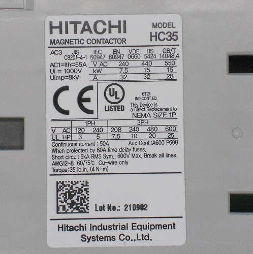 制御機器 > 電磁接触器 > 日立電機