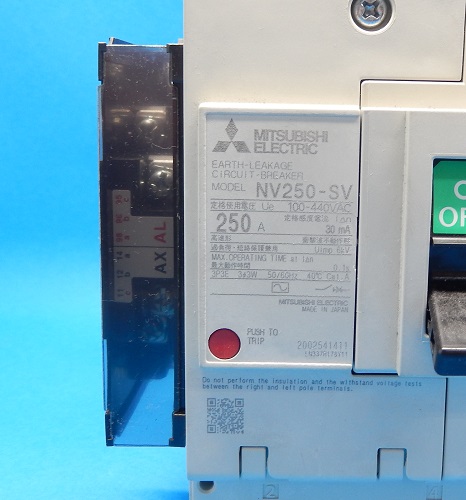 NV250-SV 3P250A B-ST組込ALAX 裏面型漏電遮断器 三菱電機 ランクS中古品