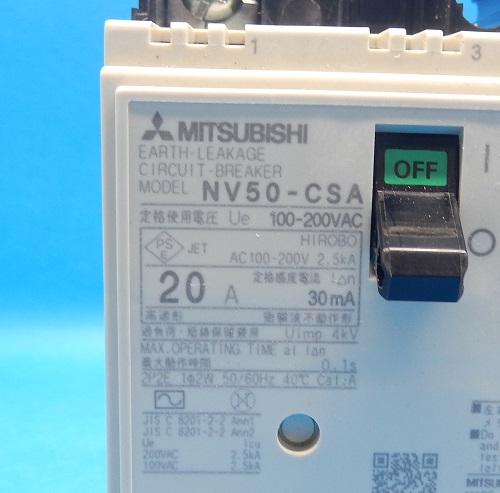 NV50-CSA 2P20A 30mA 漏電遮断器 三菱電機 未使用品
