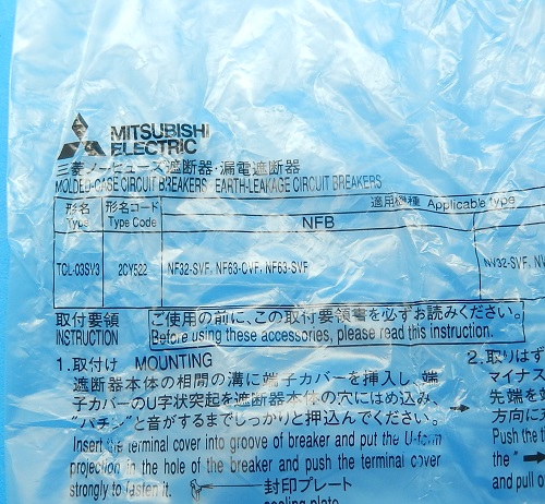 TCL-03SV3 (10PCS) 漏電・ノーヒューズ遮断器用端子カバー 三菱電機 未使用品