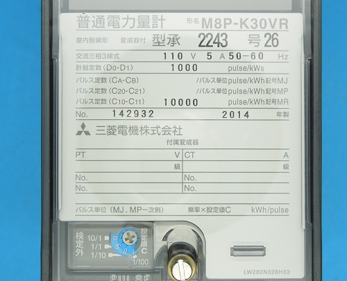 M8P-K30VR 3P3W 110V 5A 50/60Hz 電力量計 三菱電機 未使用品