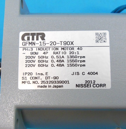 GFMN-15-20-T90X ギアモーター NISSEI ランクS中古品