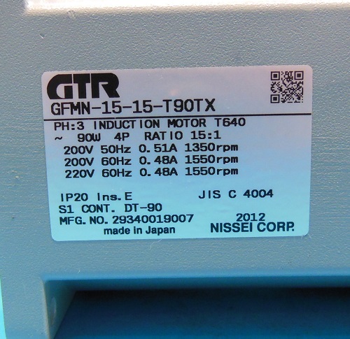 GFMN-15-15-T90TX ギアモーター NISSEI ランクS中古品